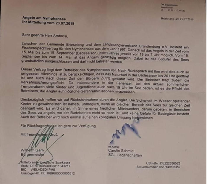Die aktuelle Regelung zum Angeln (nicht am Südufer und im Schilfbereich) gibt es hier .